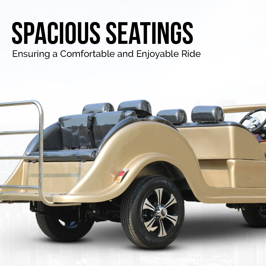 While its exterior exudes a vintage charm, the Classic Cruise is powered by modern electric technology. It offers efficient, eco-friendly performance, allowing passengers to glide smoothly across golf courses, resorts, and community pathways without disturbing the tranquility of the environment.