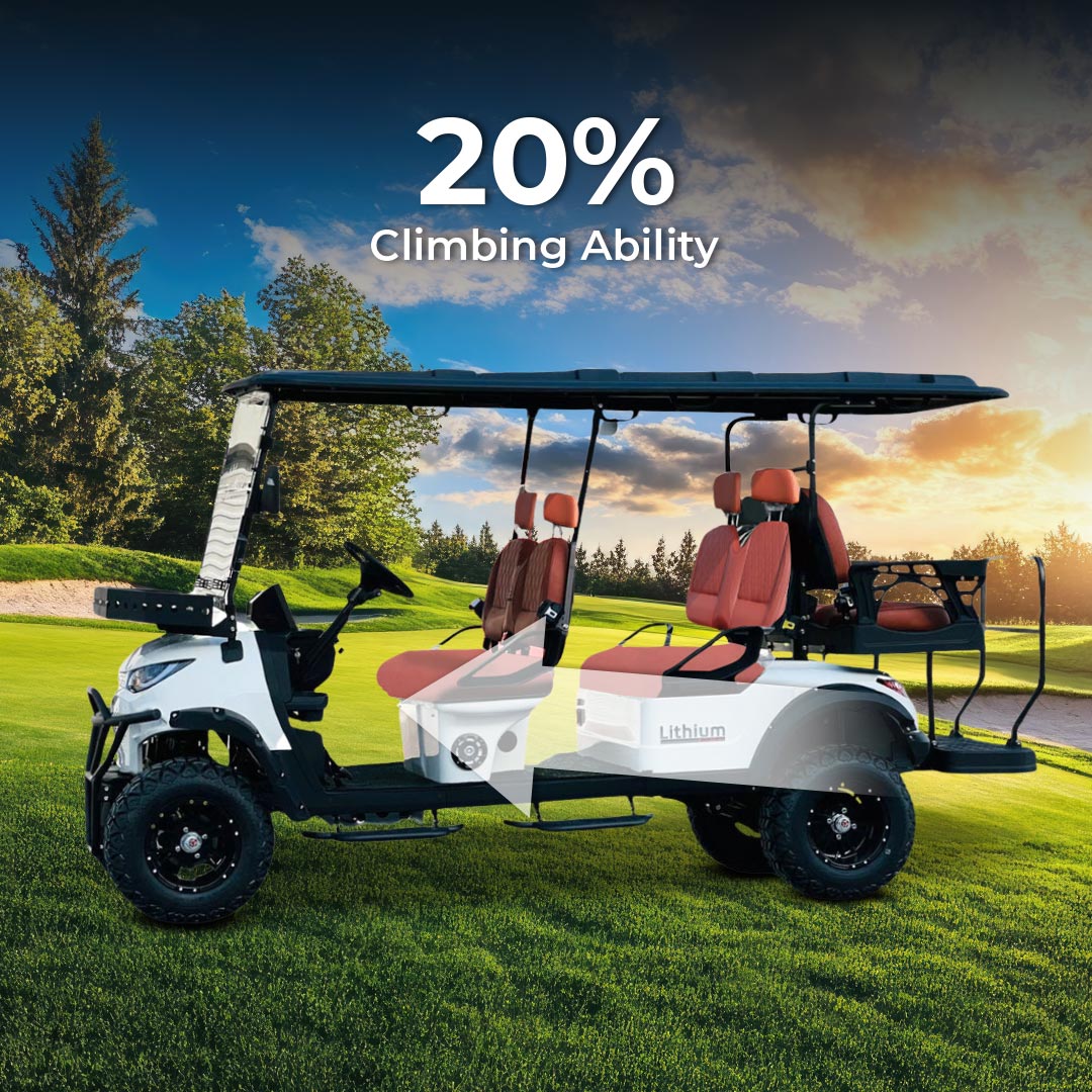 Imagine gliding through resort pathways or navigating community roads with unmatched ease and style. The Green Rider Lifted is versatile and perfect for resort areas, gated communities, and residential complexes. Its lifted suspension and off-road tires guarantee a smooth and stable ride on any terrain.