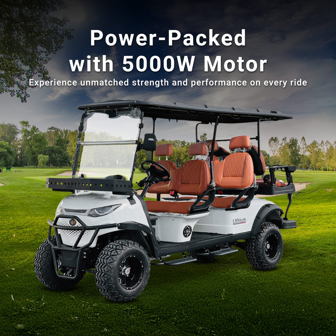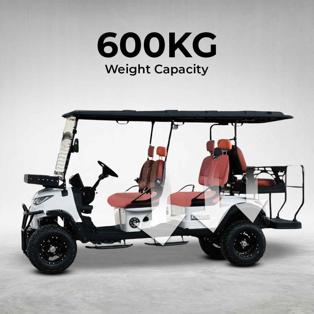 Green Rider Lifted Premium Electric Golf Cart 4+2 Seater and Lithium Battery By Gulf Buggy.