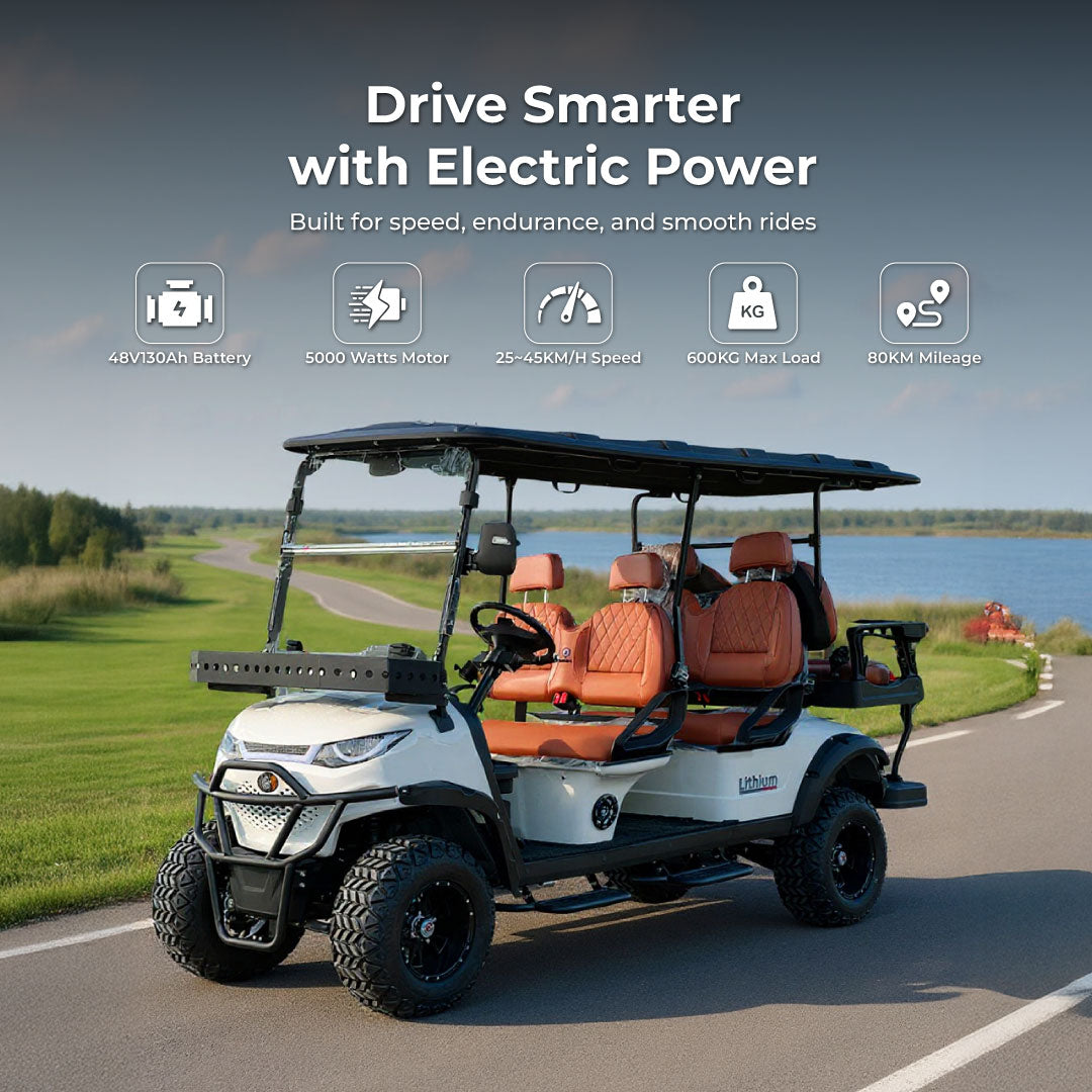 If you’re looking for a stylish, sustainable, and versatile electric golf cart, the Green Rider Lifted is the ultimate choice. Its spacious design, advanced safety features, eco-friendly technology, and off-road capabilities make it built for family fun, resort luxury, and tourist adventures. Plus, you can customize the colors, tires, and seats to match your style.