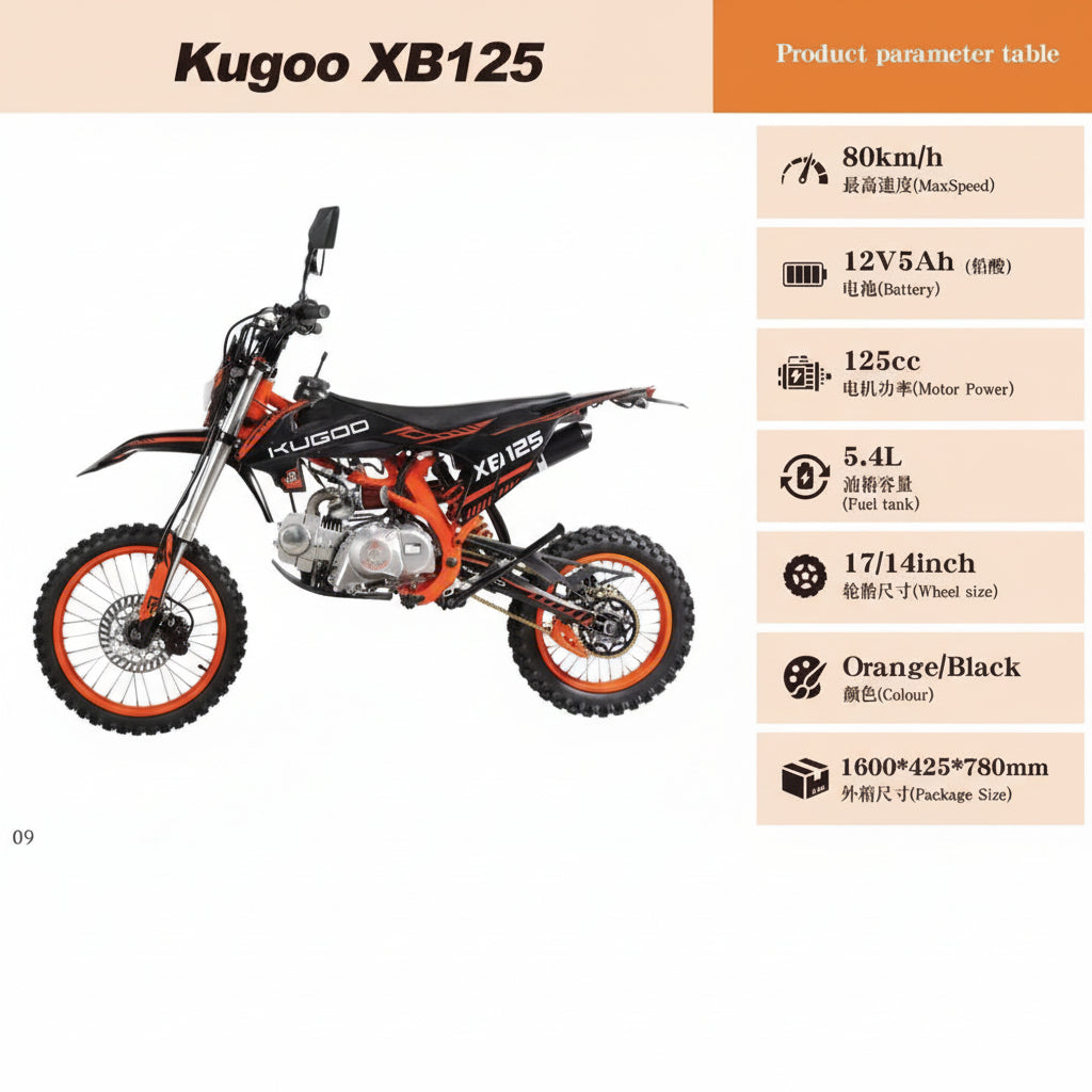 Kugoo 125CC Off-Road Dirt Bike Motor Power 125CC Off-Road Performance With Speed 80 km/h Specifications are as follows: