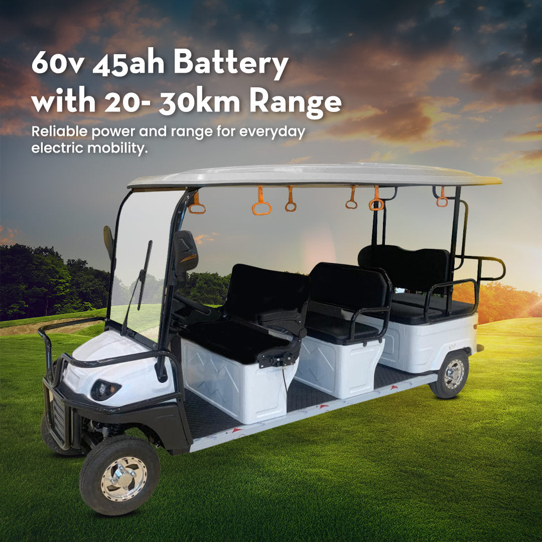 Don't settle for ordinary; upgrade your ride with the Gulf buggy 8-seater Golf Cart. With industry-leading power, safety features, comfort, and reliability, this cart offers everything you need for a first-class experience on the course. Whether you're golfing, cruising through resorts, or taking a scenic ride with friends, the Gulf Buggy Golf Cart makes every trip unforgettable.