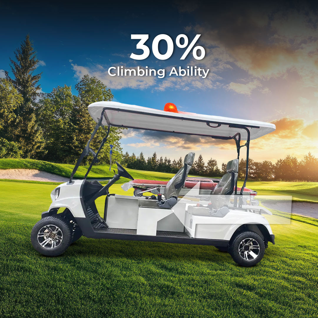 When every second counts, the Gulf Buggy Responder 3 Sports Medical Ambulance Electric Golf Cart emerges as a game-changer; this compact, efficient, eco-friendly mini-ambulance is designed to navigate tight spaces and crowded areas, ensuring timely medical attention. Built to deliver fast, effective, and safe patient transportation, it’s the perfect solution for sports arenas, airports, resorts, and other facilities where a full-sized ambulance may struggle to operate.