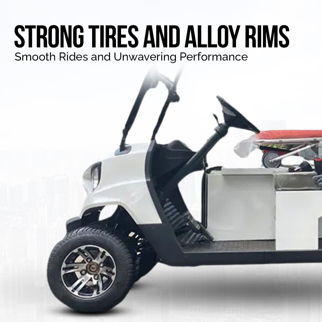 This three-seater Ambulance Dubai Electric Golf cart is the Best Quality Electric golf cart at the most reasonable price near me In UAE.